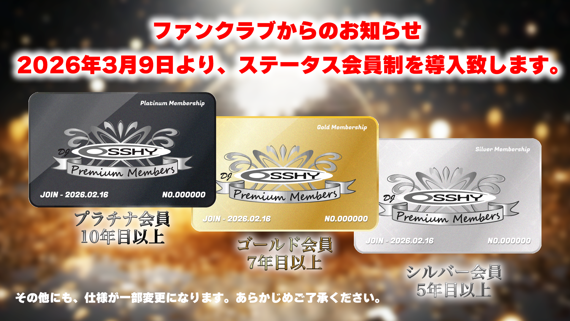 そして、本日よりDJ OSSHY Premium Membersではステータス会員制度が導入されました。