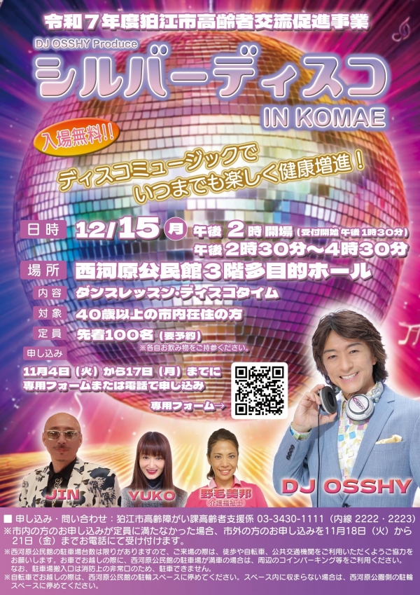 【東京都 狛江市】DJ OSSHY presents シルバーディスコ @ 狛江エコルマホール
