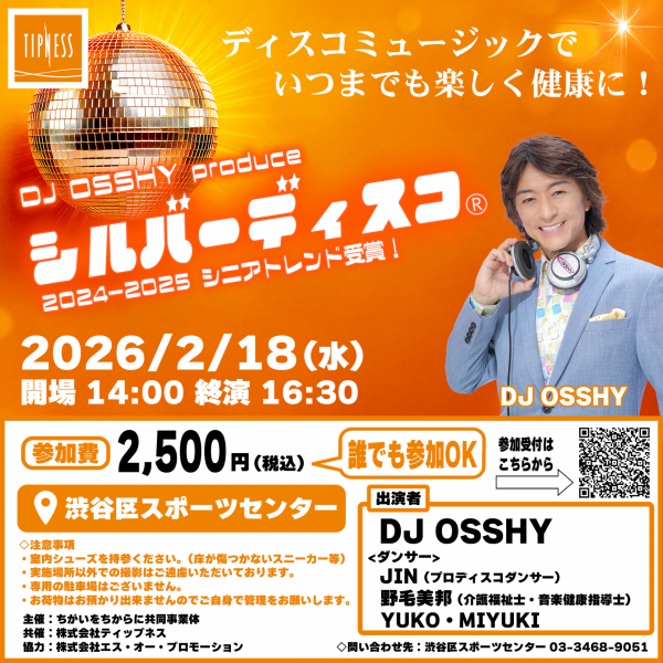 【東京都 渋谷区】ティップネス × DJ OSSHY presents シルバーディスコ @ 渋谷区スポーツセンター