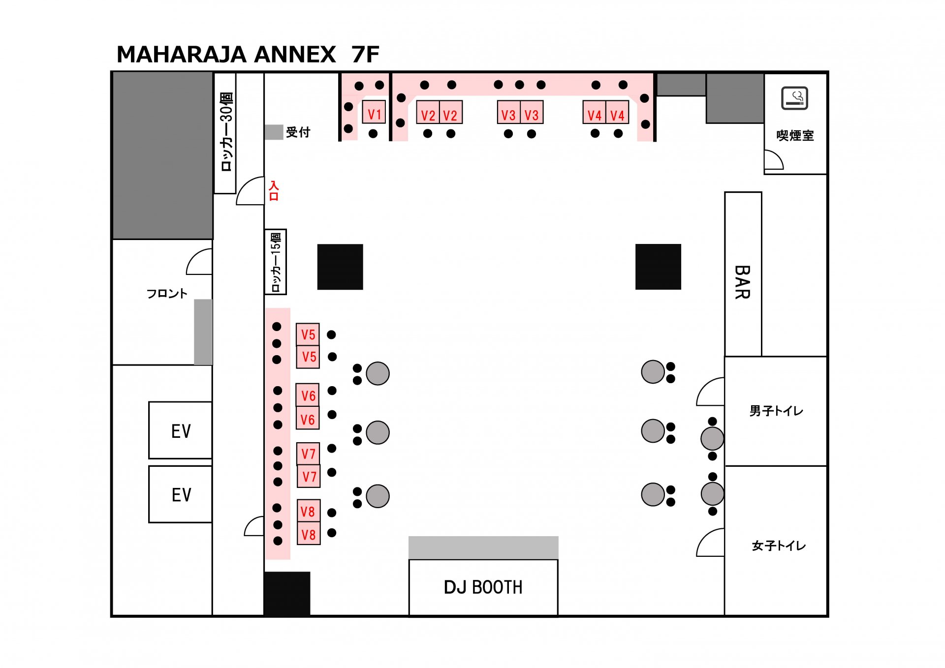 ●V5、V6、V7、V8 各5名様まで利用可 1卓 ¥15,000